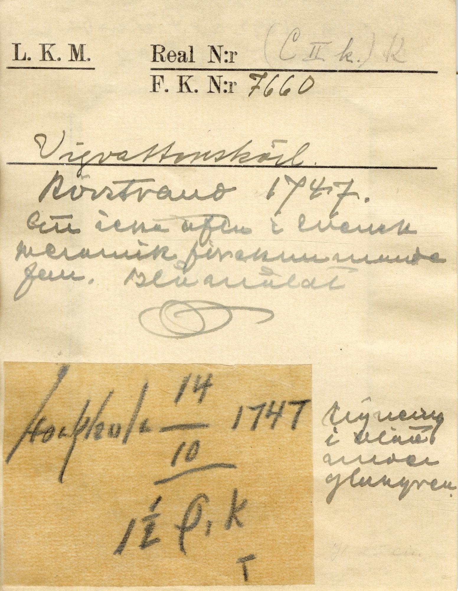 signerad: Stockholm 14/10 1747 1 1/2 B:K T [avritat på katalogkort] [bild 2]