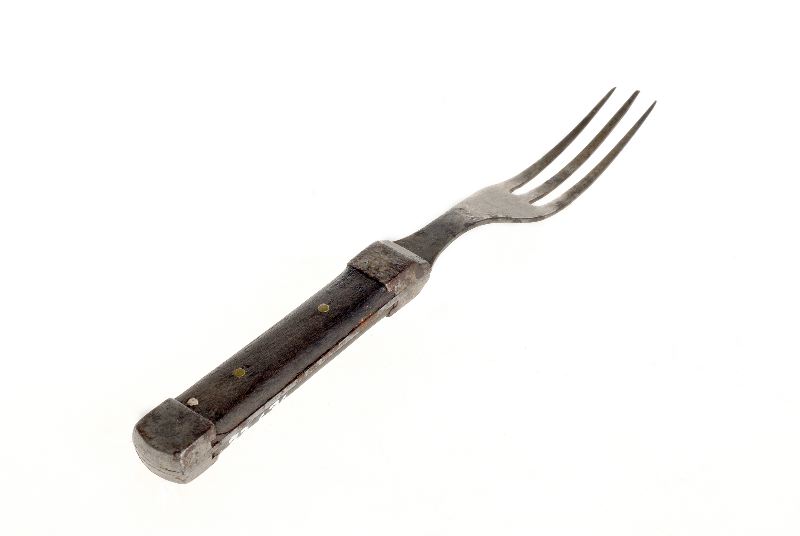 Med tre tänder av stål och ebenholtsskaft med mässingsnitar.