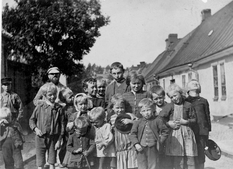 Barn och ungdomar på Östra Vallgatan 1890-talet. Fotograferat 1890-talet.