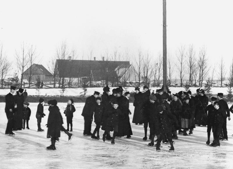 Lund. Repro.Skridskoåkning på idrottsplatsen på 1890-talet.