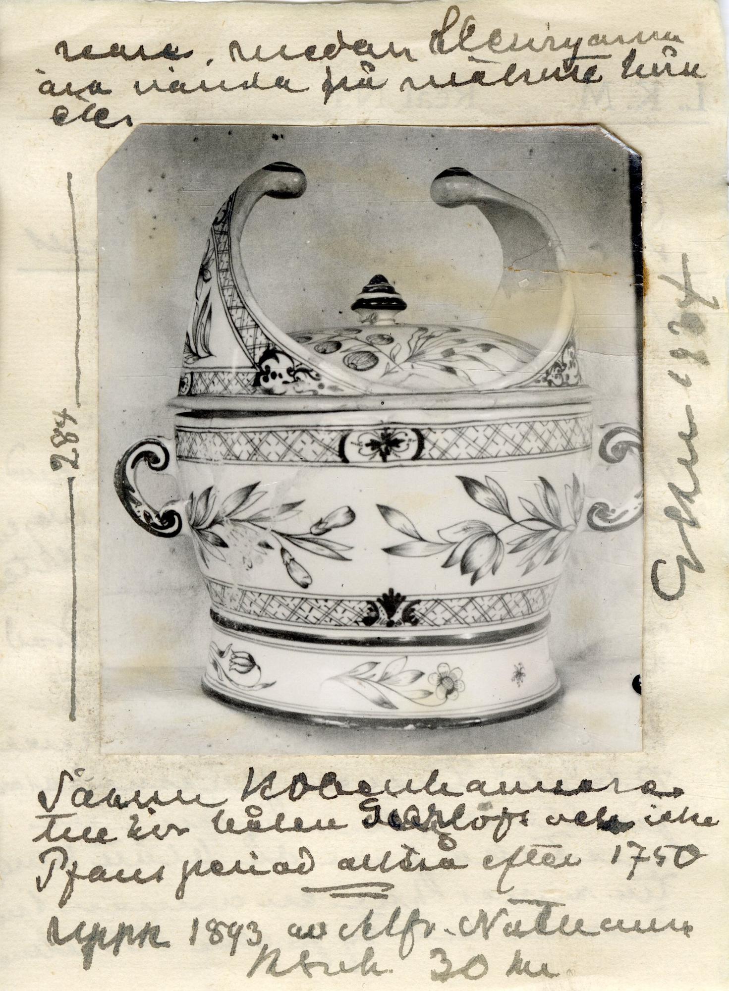 "I Danmark förekom emellertid en bål, som såg ut som en biskopsmössa med två uppstående spetsar. Det erbjuder inga svårigheter att utlista tankegången bakom tillkomsten av denna form. En mycket omtyckt dryck vid denna tid var bischoff. Den tillverkades vanligen av rödvin, vatten, socker och pomerans. Möjligen är det färgen, som givit denna dryck sitt namn - men det fanns även andra drycker med prästerliga namn, såsom papst, kardinal och prelat. I varje fall har bischoff ingivit den keramiske konstnären idén till den danska biskopsbålen."