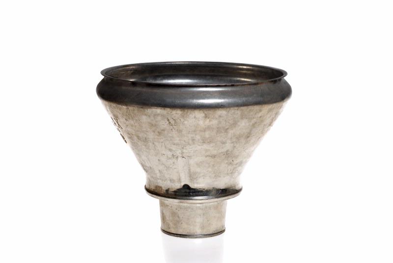 Trattformig med lös silduk, platta, bricka och låsning; märkt: Pressbolaget Eskilstuna; obegagnad.