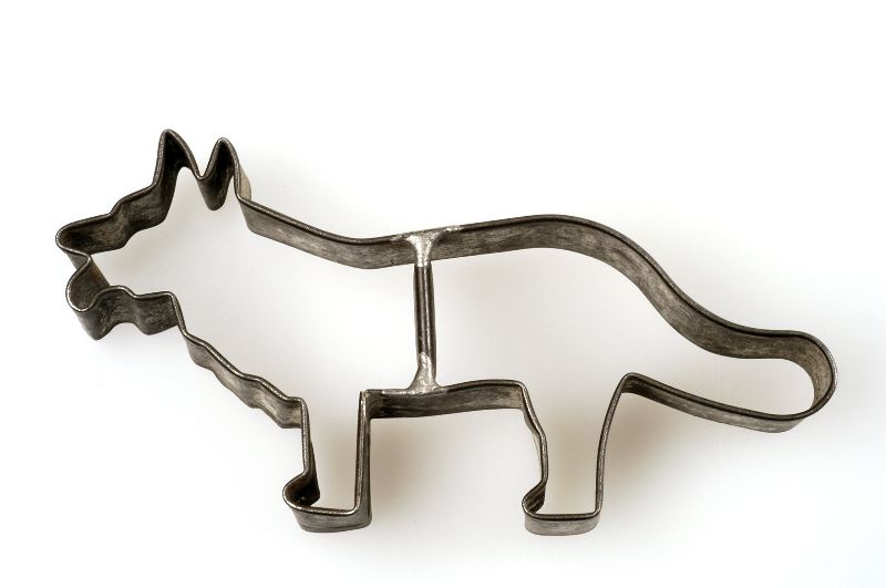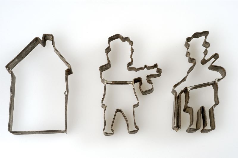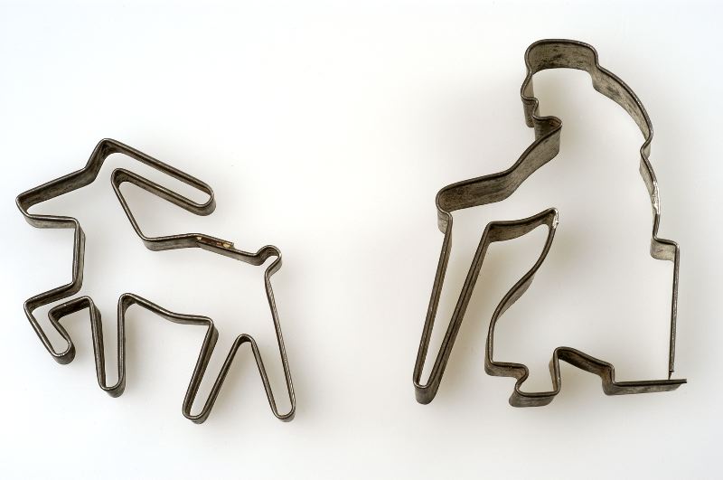 Hjort, räv, häxa, hus och två människofigurer. H 6-9 cm.