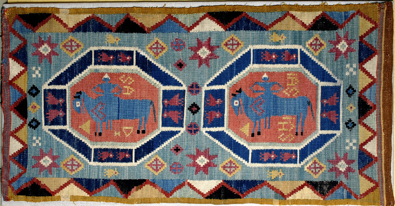 Enligt muntlig tradition en åkdyna för kyrkfärd. Liknande åkdyna, från Håslöv i Skytts härad, finns upptagen i Malmöhus läns hemslöjds inventering från 1916. Motivet på den åkdynan innehåller även en vit duva (glädjens budbärare) och en tupp (symbol för uppståndelsen). /uppgiften lämnad av Åke Asmundsson.