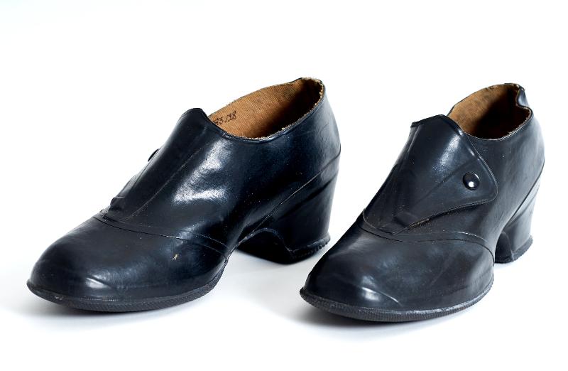 Svart gummi. Plats för klack, knäpps på sidan med tryckknapp. Storlek 6.