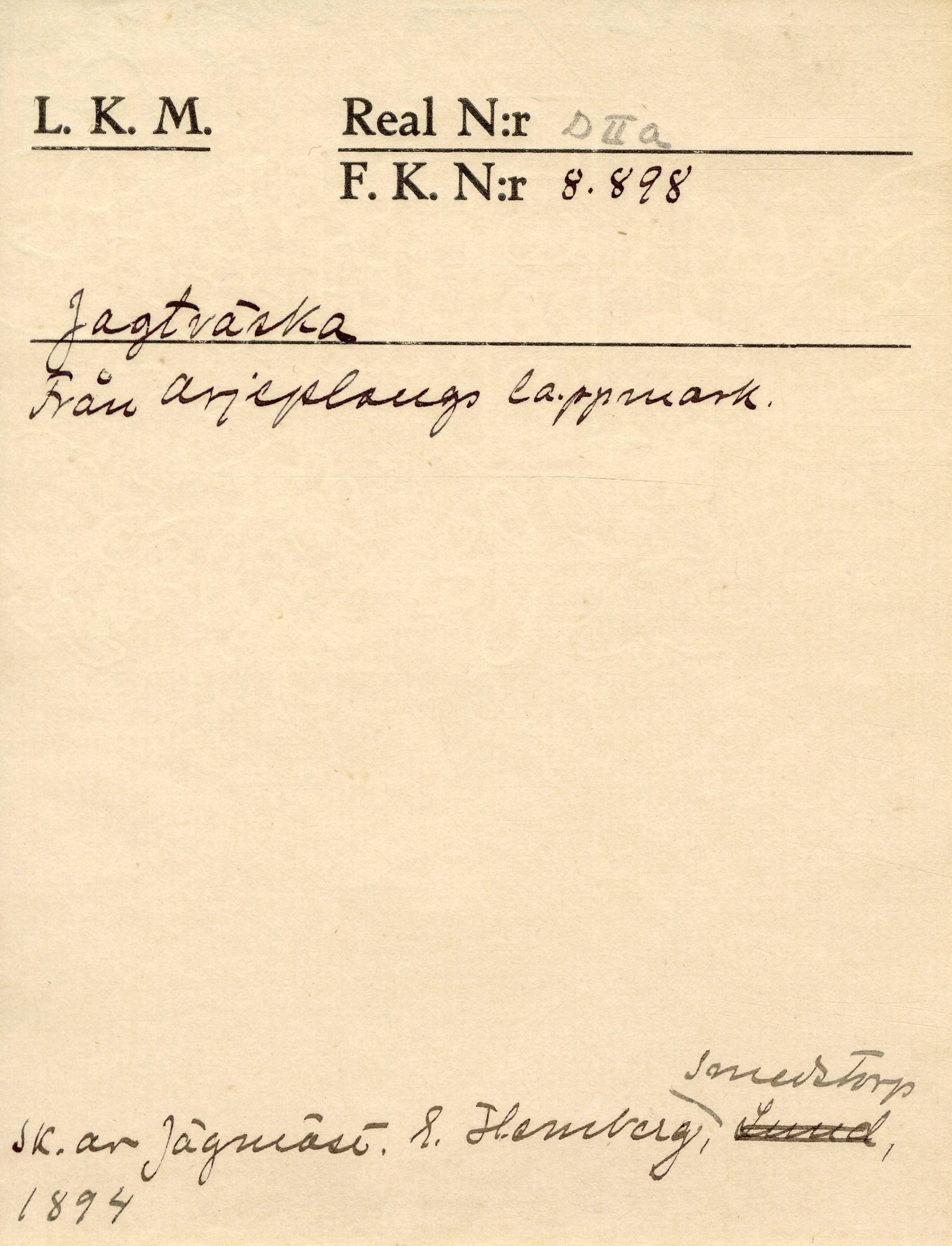 Jaktväska, Arjeplougs lappmark. Katalogkort saknas.