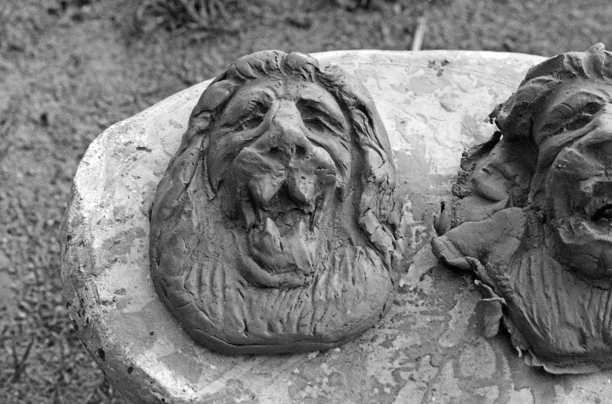 Inv. av Alb. Elfstrands krukmak. Sjöbo: Avtryck i lera efter gipsformar till lejonmasker. Fr. äg.