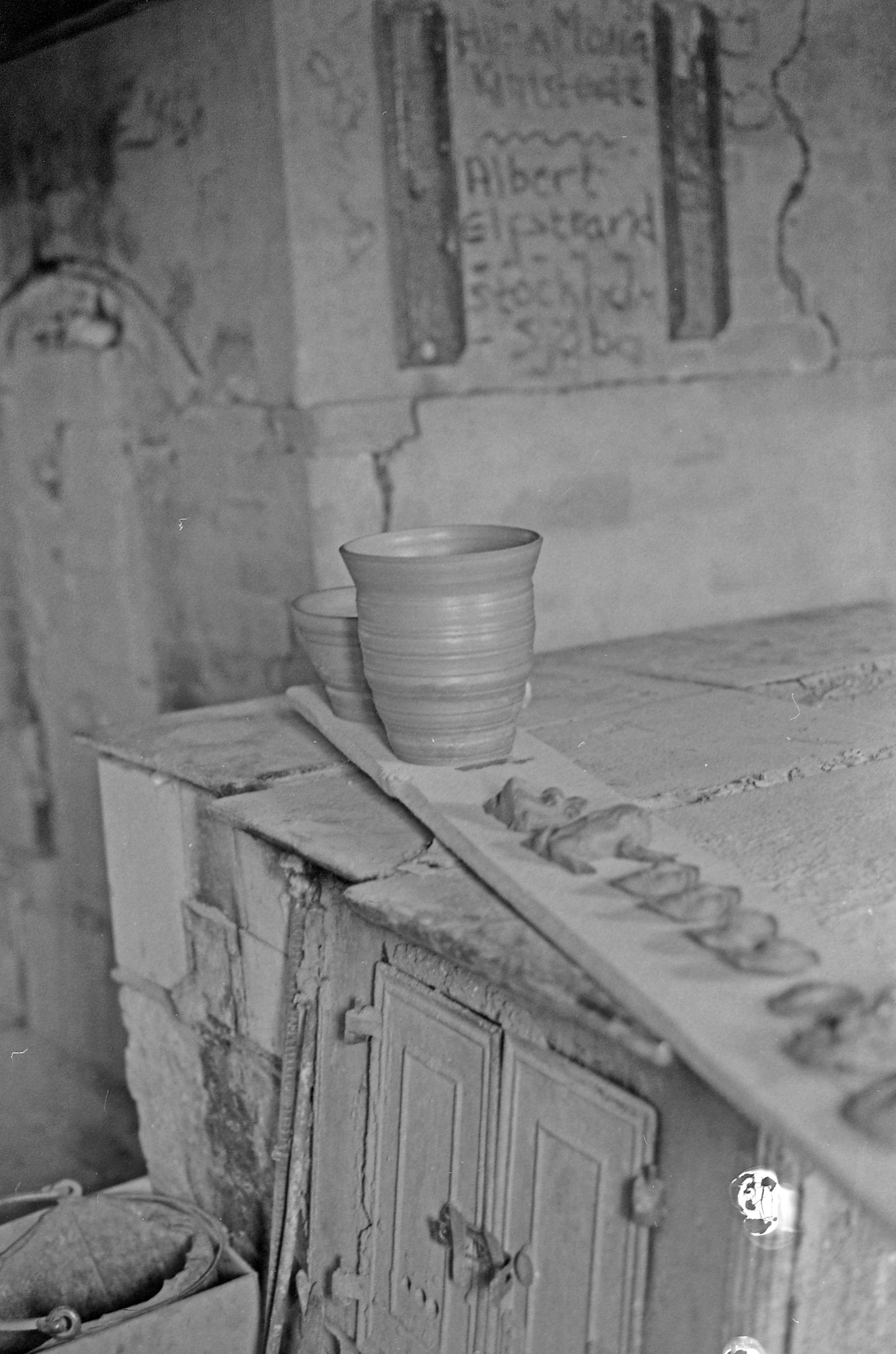 Inv. av Alb. Elfstrands krukmak. Sjöbo: Verkstadsinteriör med desbräda. Fr. äg.