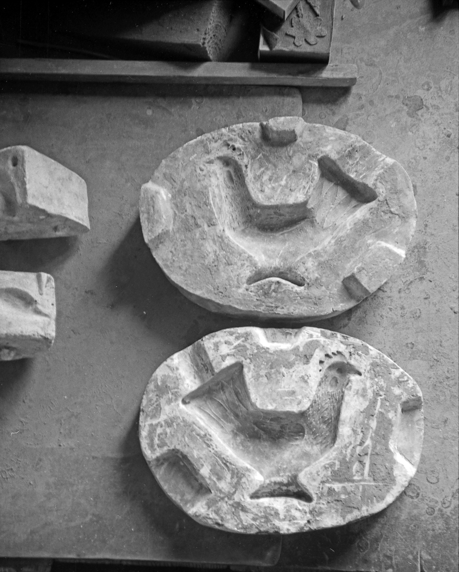 Sjöbo. Formar och redskap i Albert Elfstrands verkstad, Sjöbo. Form till tupp. Fr. äg.