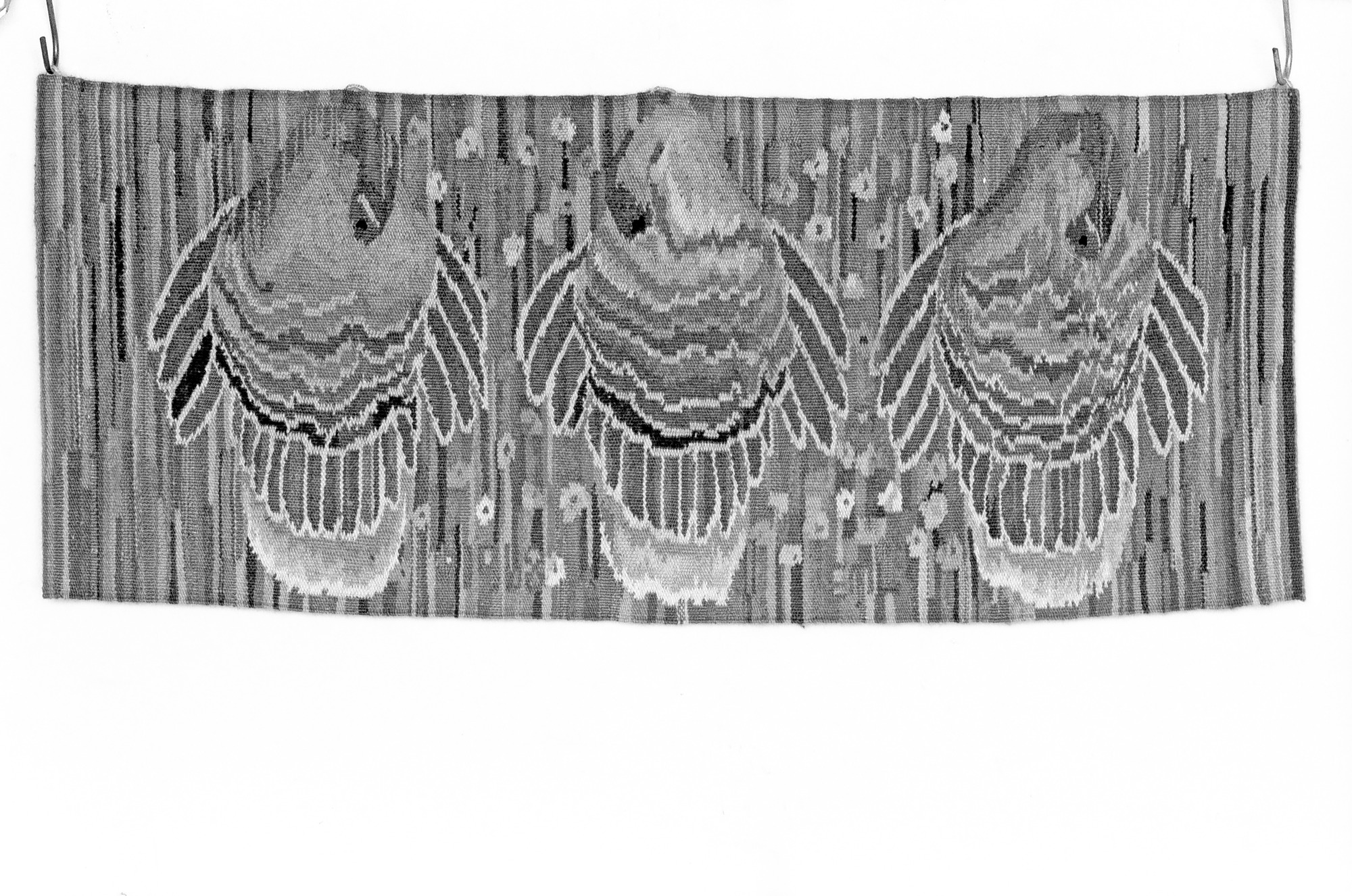 "Vilande gäss", bildväv, signerad EML 1968.