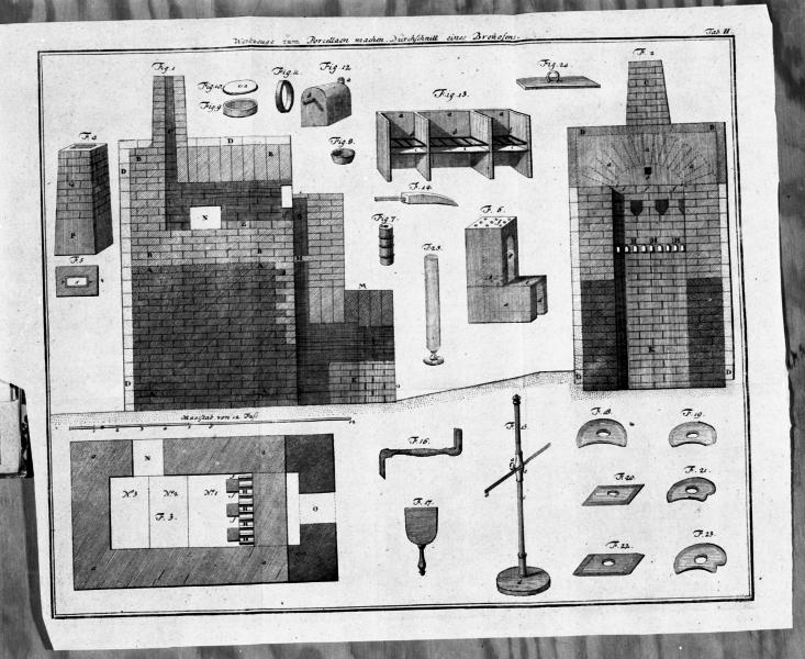Plancher ur von Milly, "Die Kunst das ächte Porzellan zu verferstigen", Leipzig 1775. Bibl. nr 13225.
