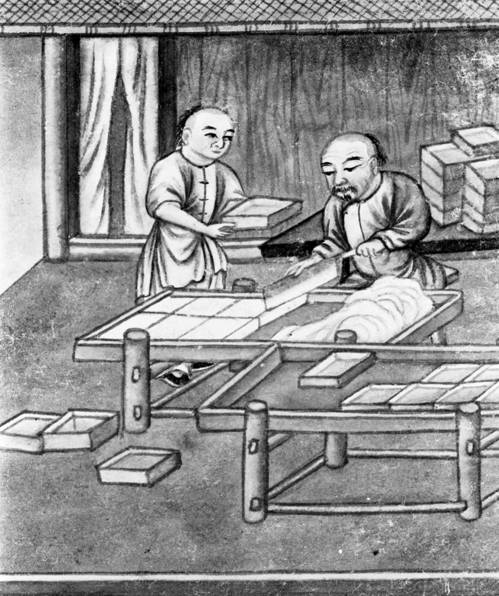 Akvarellserie om porslinstilljverkning. Kina c. 1730. tillhör UB.