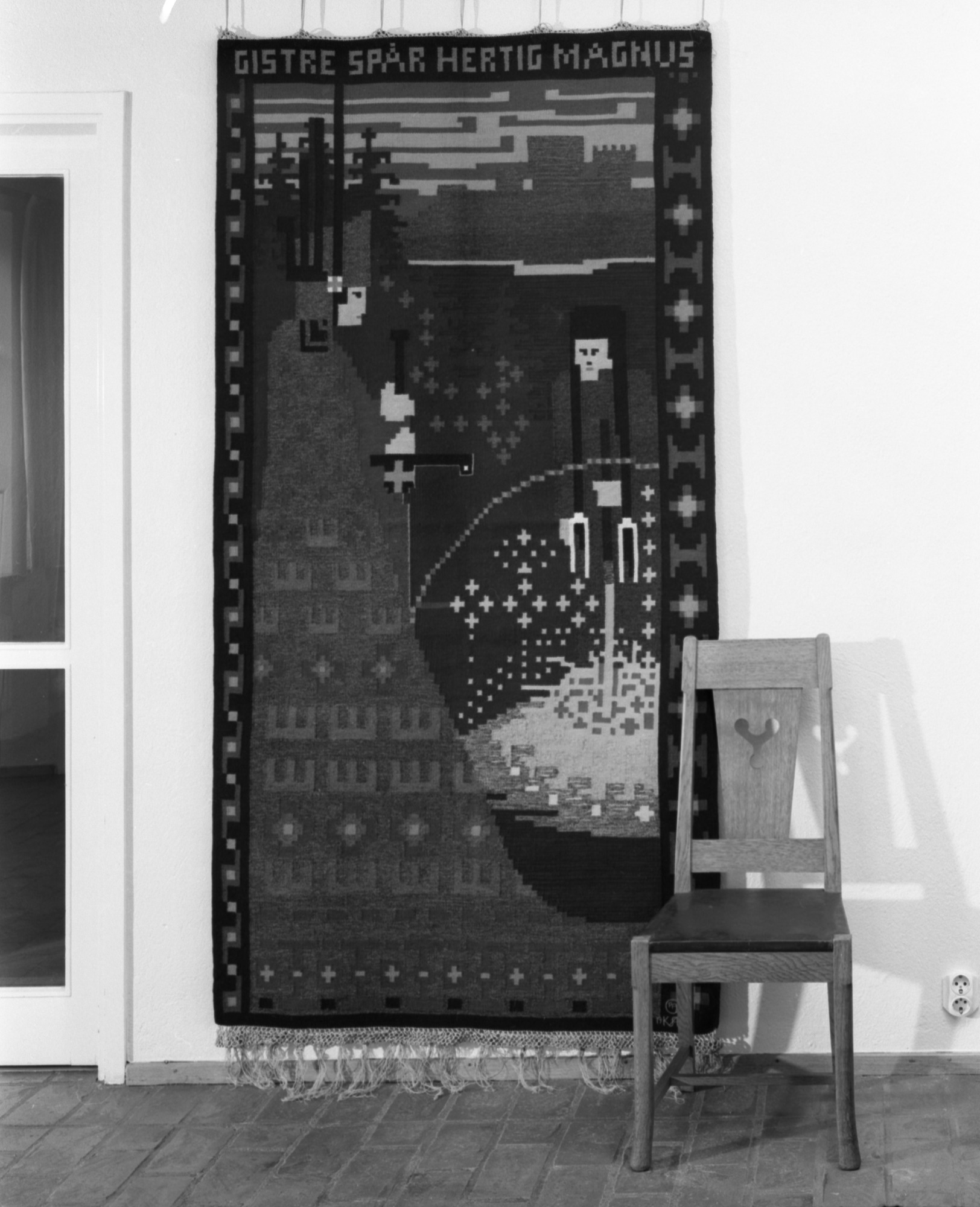 KSAL. Bildvävnad. P.A. Olsson "Gistre spår..."[Gistre spår hertig Magnus] + Stol, årsb-82. Kulturen.