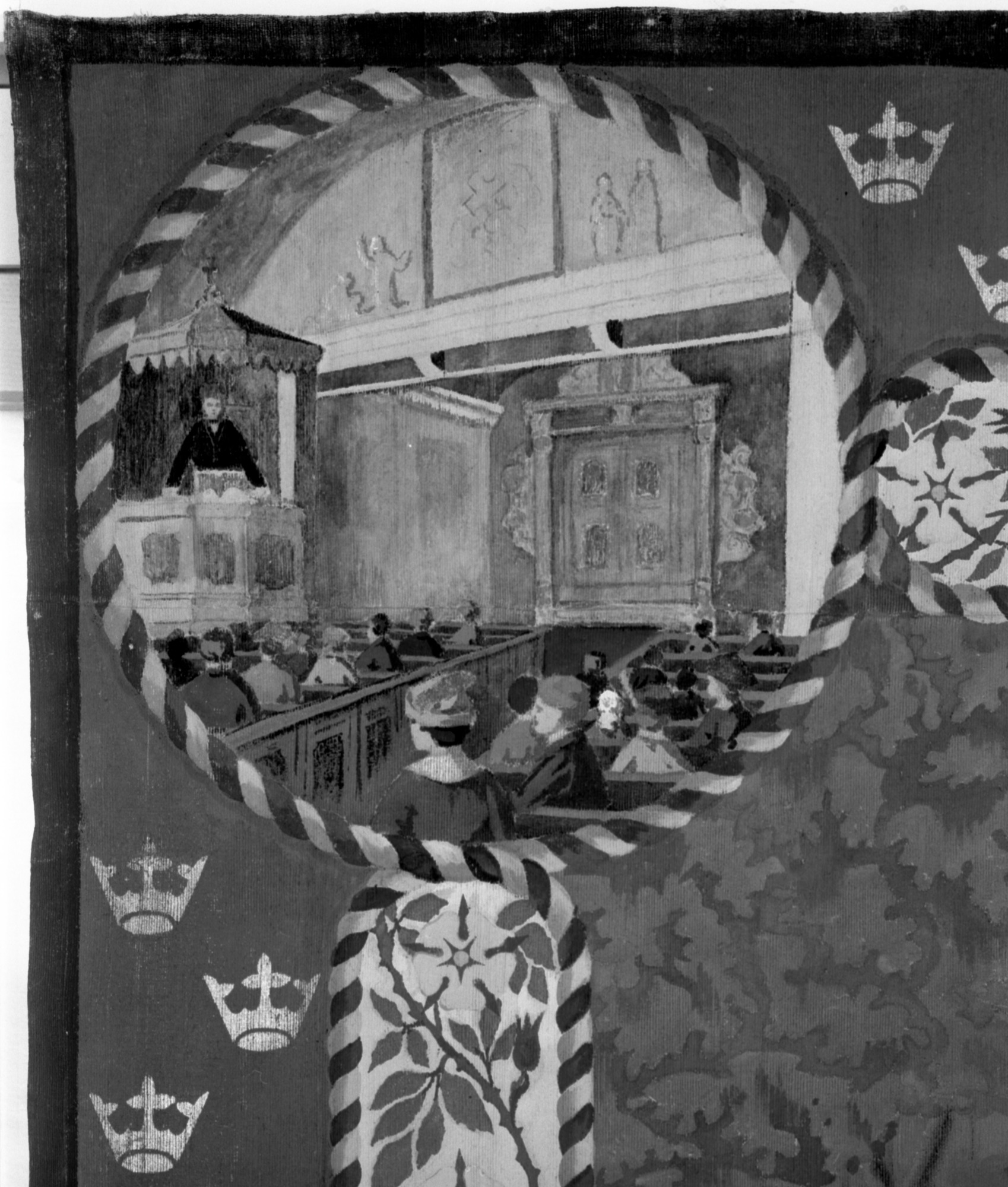 friluftsmuseum; gobelin; målning; tapet; vävnad; kyrka
