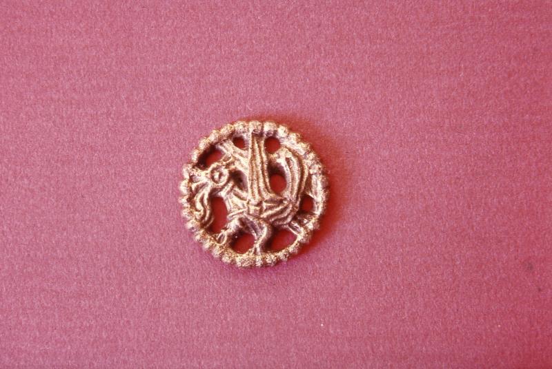 Lundaarkeologiska avdelningens fotonegativ. KM 53436.57. Kv. Färgaren 22, Thulegrävningen. Spänne av brons.