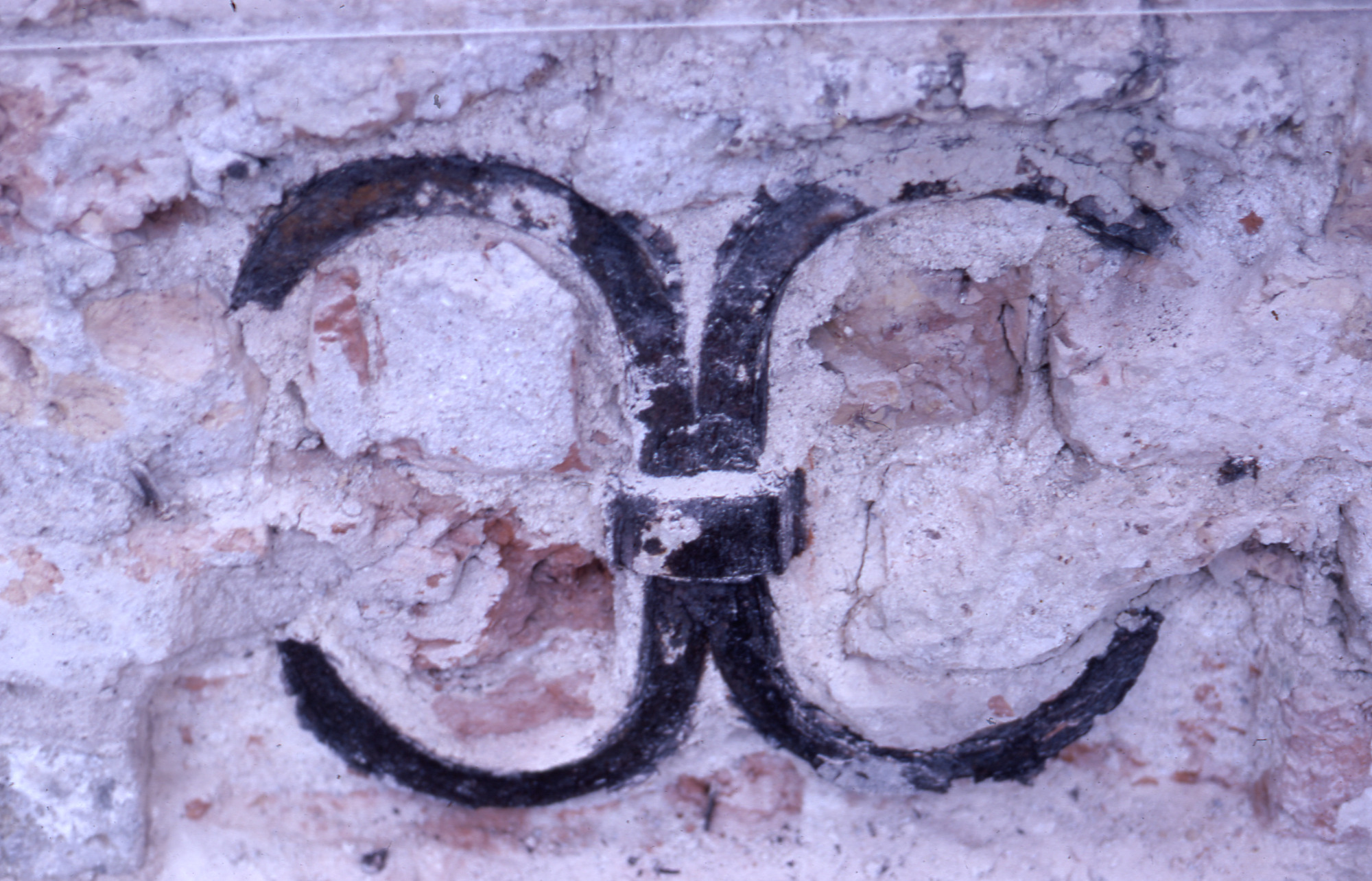 Lundaarkeologiska avdelningens fotonegativ. Lund. Kv. Maria Magle 11. Detalj av ankarjärn.