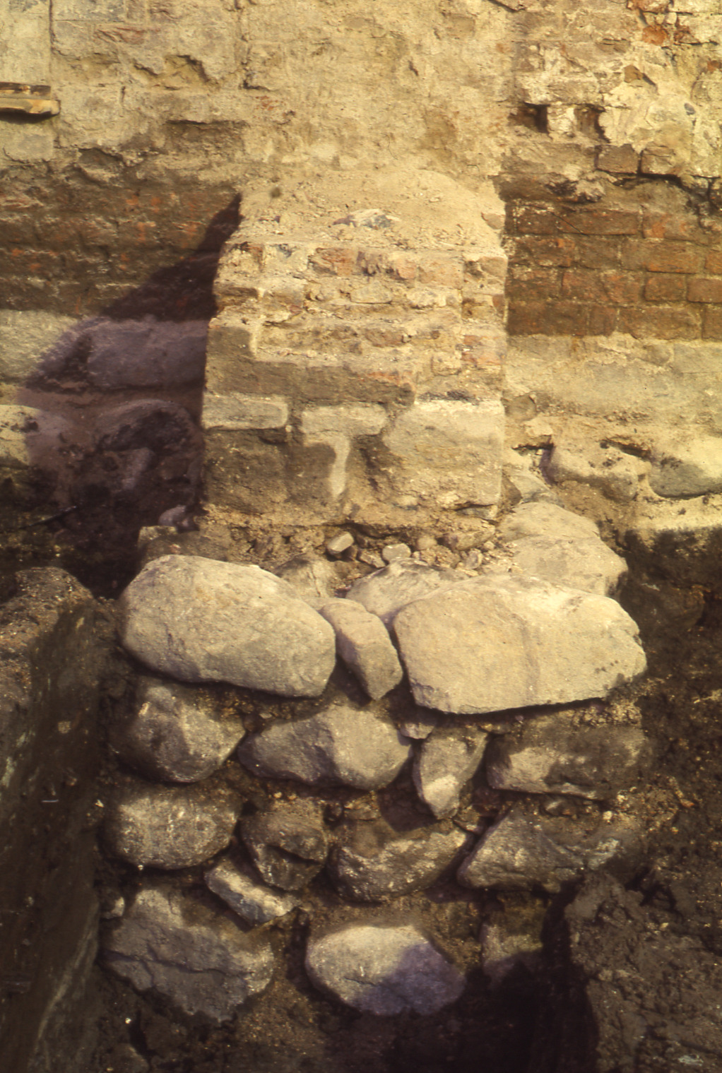 Lundaarkeologiska avdelningens fotonegativ. Lund. Kv. Maria Magle 11. Interiör, murklacken vid södra gaveln, sedd från N.