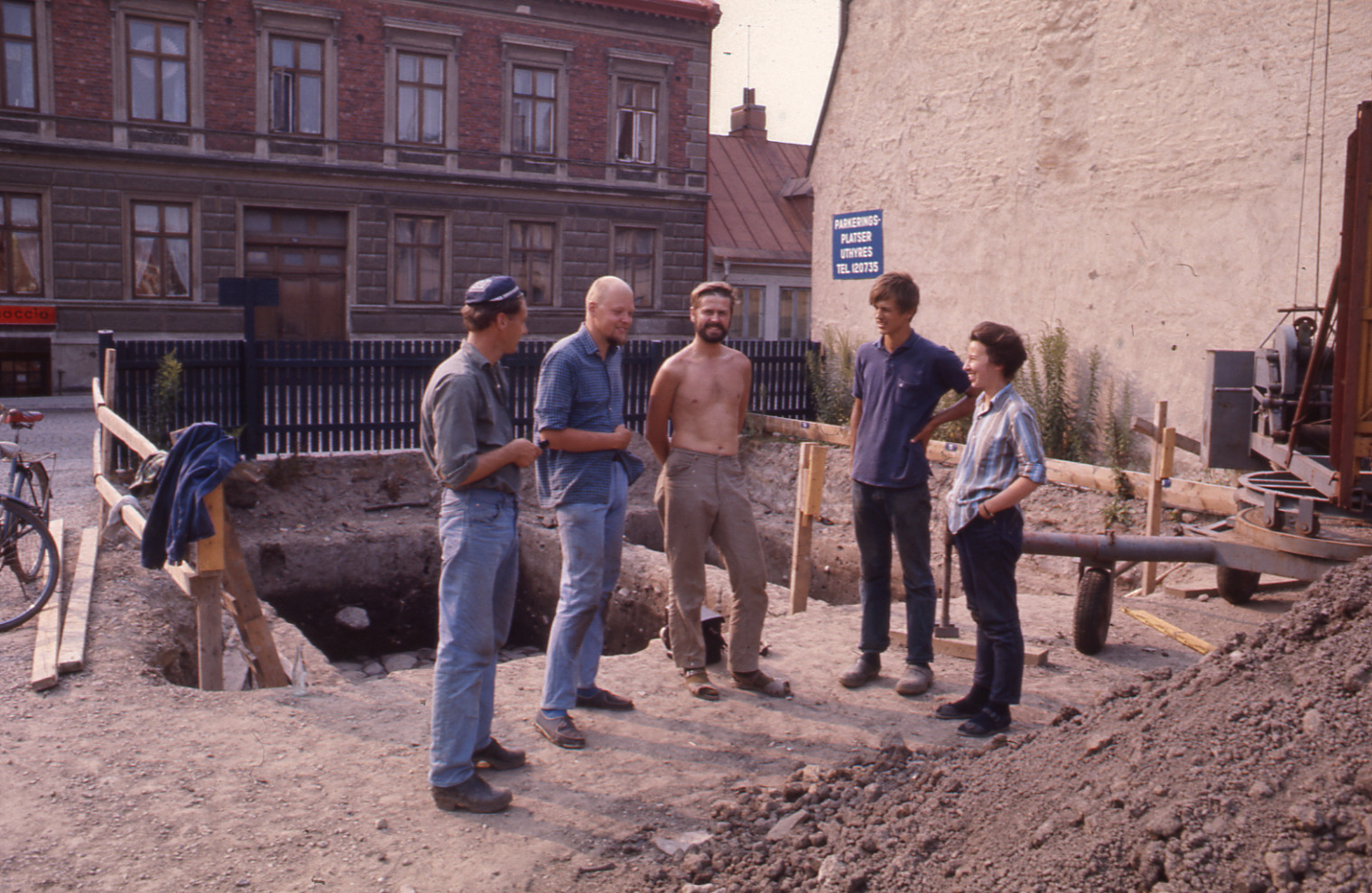 Lundaarkeologiska avdelningens fotonegativ. Lund. Kv. Repslagaren nr 22. Grävningspersonal Klas ....., Olof Stroh, Bo Kindvall, Björn Hansson, Birgitta Sjöholm.