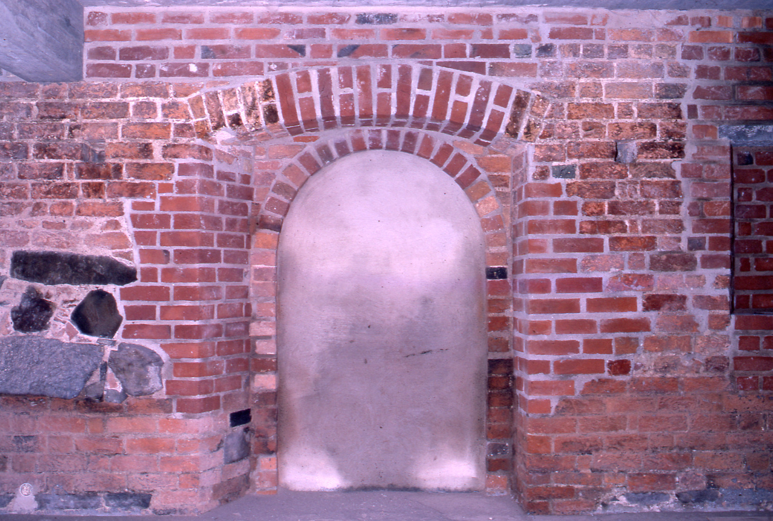 Lundaarkeologiska avdelningens fotonegativ. Lund. Kv. Maria Magle 11. Interiör, bottenvån. Dörren i västväggen. Foto fr. Ö.