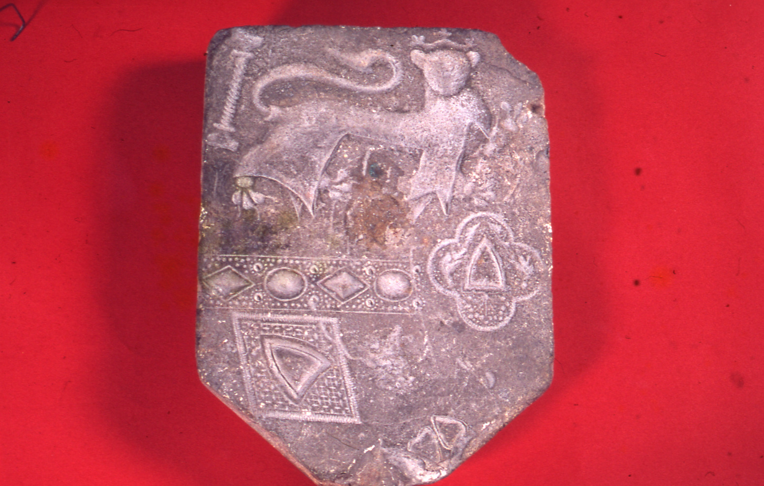Lundaarkeologiska avdelningens fotonegativ. Lund. Gjutform. Monter 4. Medeltidshallen.