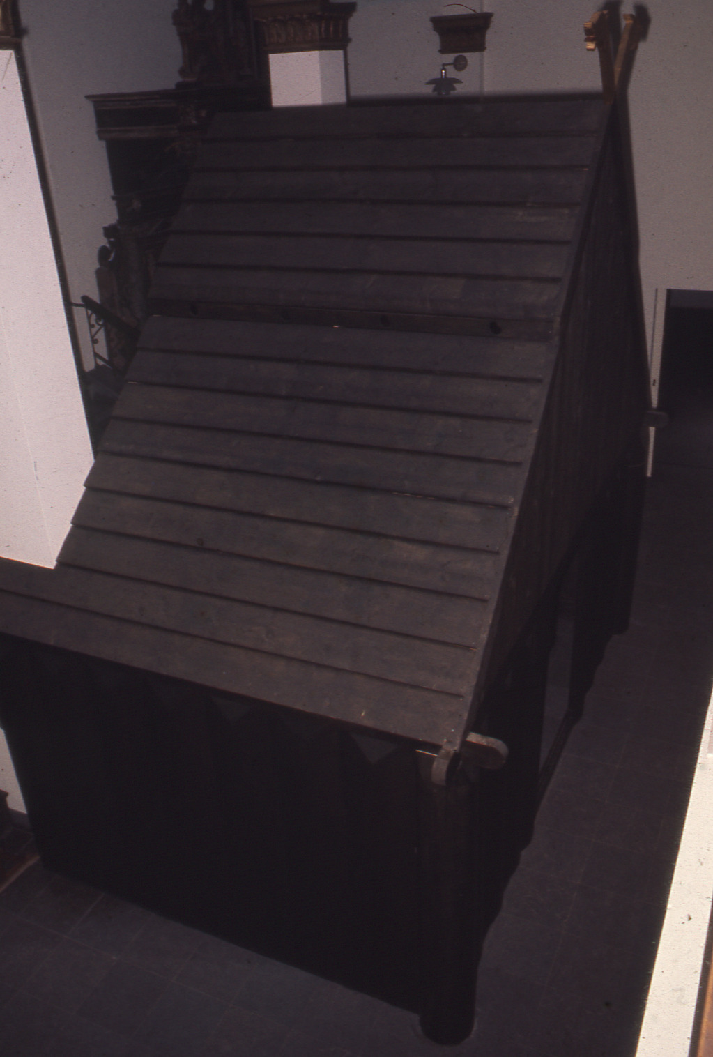 Rekonstruktion av medeltida resvirkeshus. Foto fr. SV.