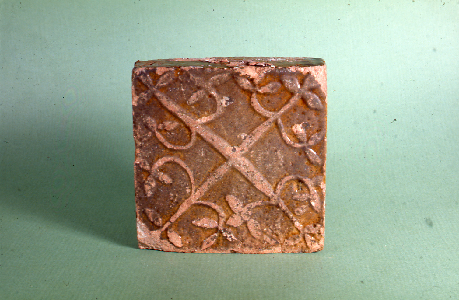 Lundaarkeologiska avdelningens fotonegativ. KM 35819. Lund. Kv. Apotekaren 10. Golvflisa.