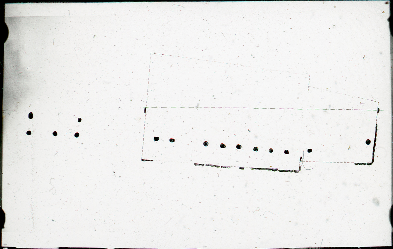 Lundaarkeologiska avdelningens fotonegativ. Lund. Kv. Färgaren 22. Plan. Drottens stavkyrka.