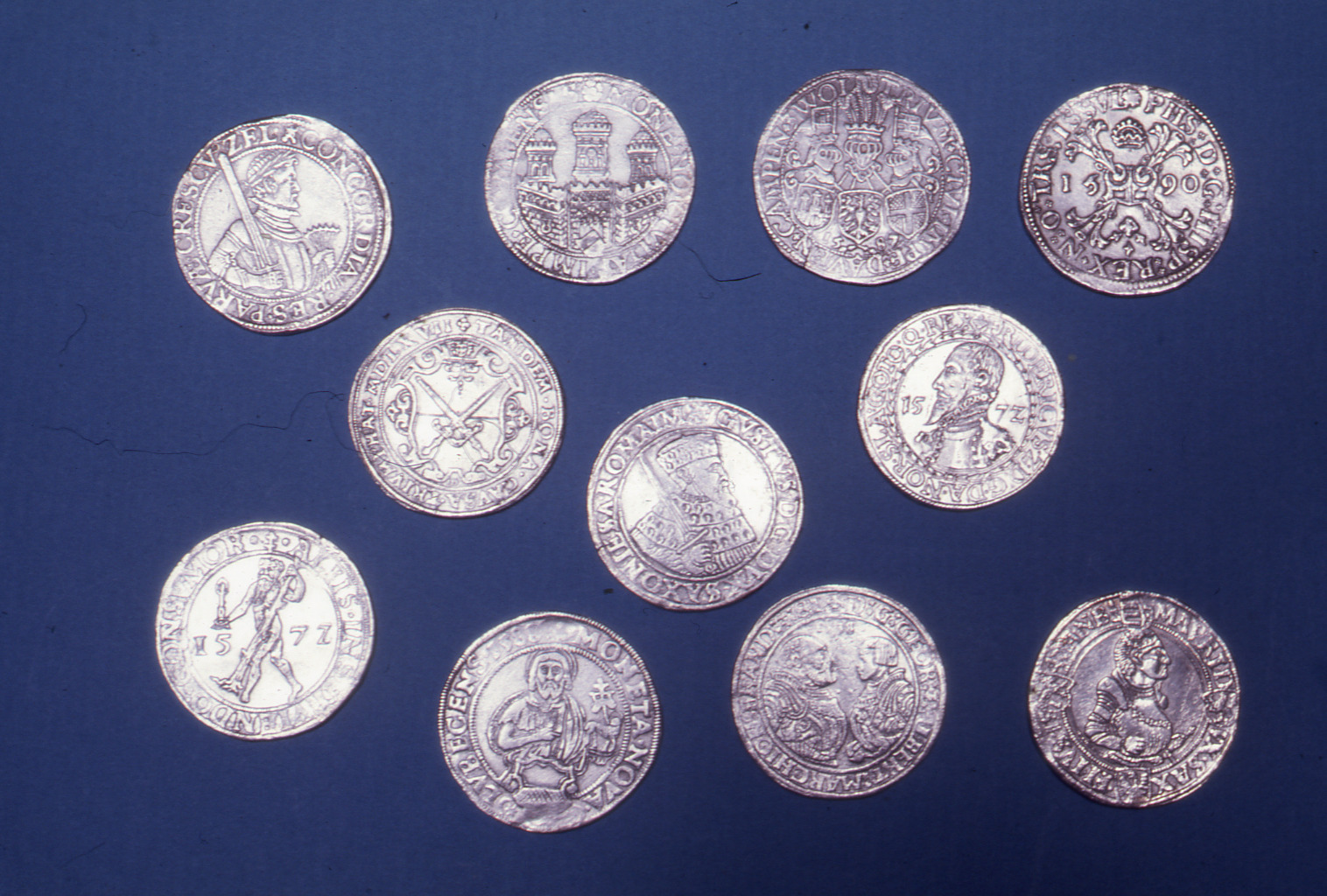 Lundaarkeologiska avdelningens fotonegativ. Lund. Kv. Svartbröder 23. 11 st mynt ur myntskatten KM 62892.35 (åtsidorna).