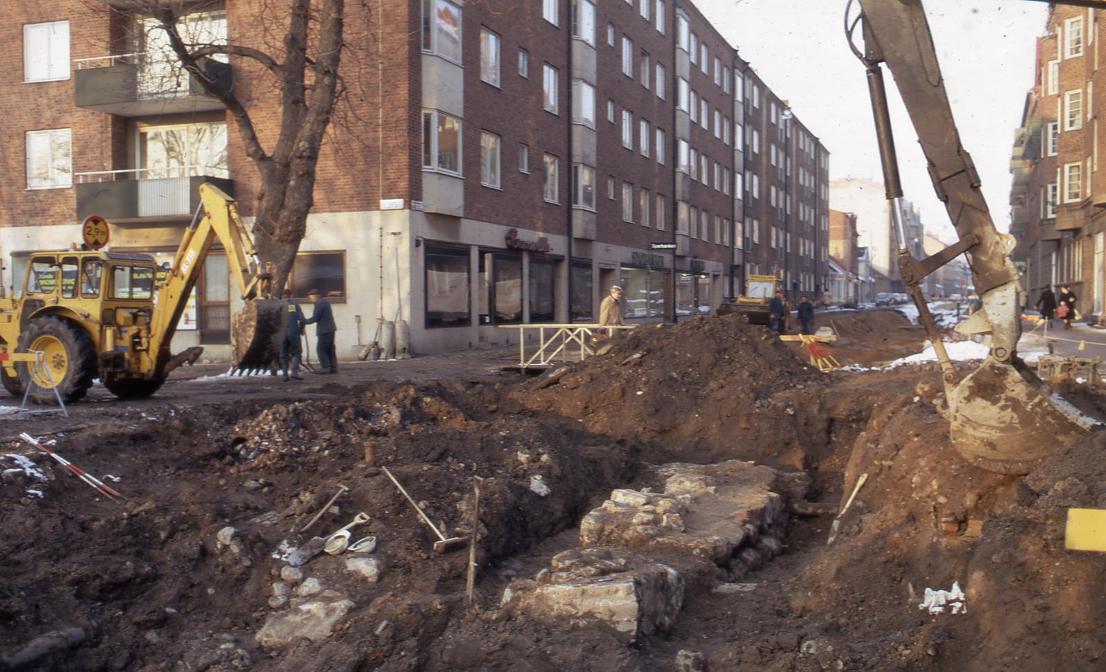 Grävning för avloppsledning i Stora Södergatan, sker samtidigt med Stortorget. Arkeologiska arkivrapporter från Lund, nr 305.