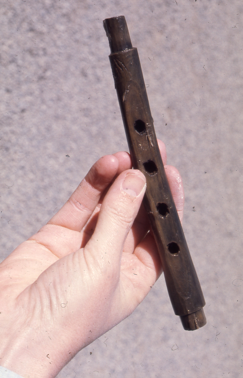 Lundaarkeologiska avdelningens fotonegativ. Lund. Kv. Svartbröder 23. Melodipipa av trä till säckpipa (KM 62892:3094).