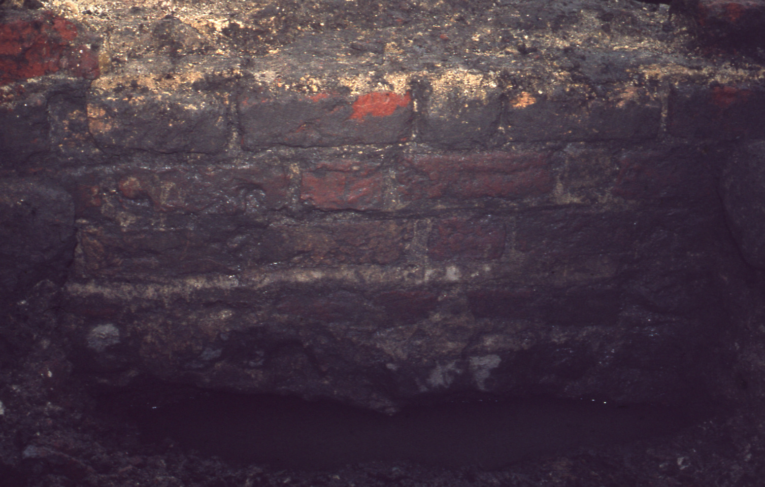 Lundaarkeologiska avdelningens fotonegativ. Lund. Klostergatan. Del av västra kyrkogårdsmuren mot öster.
