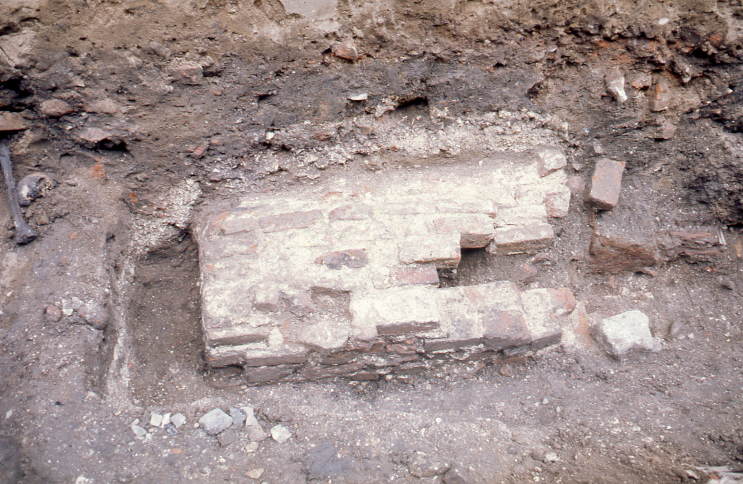 Lundaarkeologiska avdelningens fotonegativ. Lund. Klostergatan. Tegelsarkofagen uppifrån mot N.