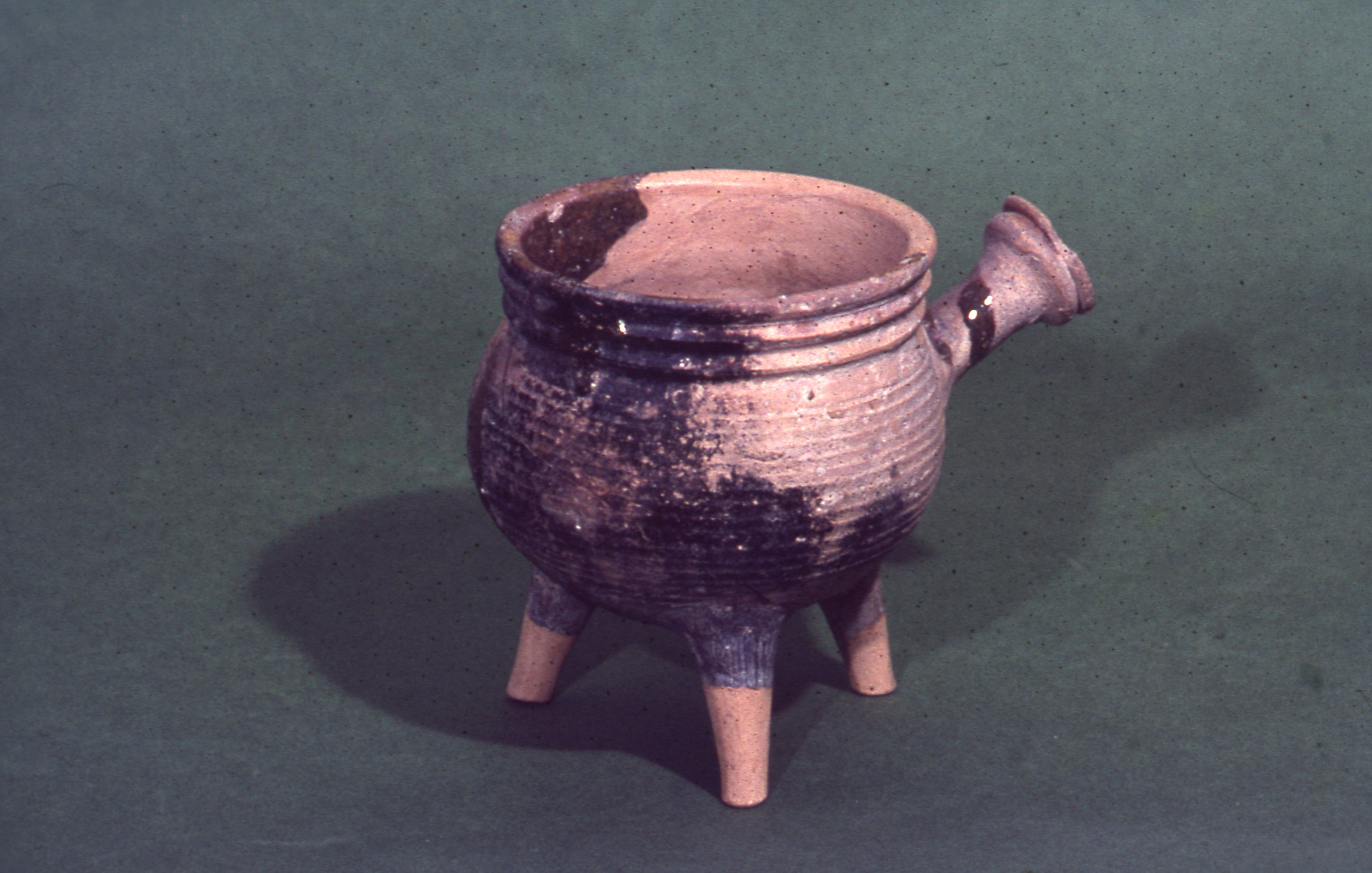 Lundaarkeologiska avdelningens fotonegativ. Lund. Kv. Altona 4,5. Trefotsgryta av rödgods. KM 14097.a.