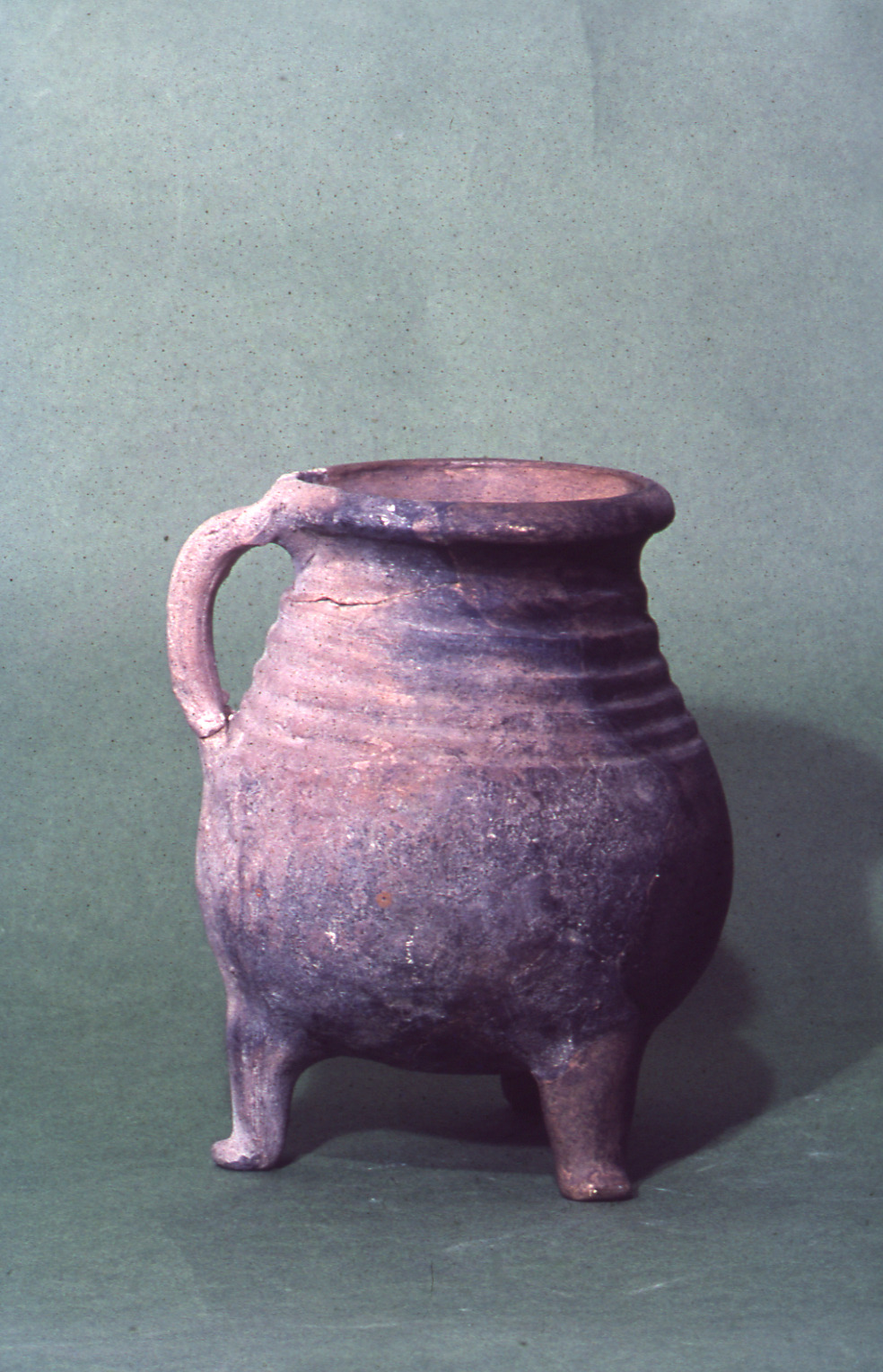 Lundaarkeologiska avdelningens fotonegativ. Lund. Kv. Maria Minor 2. Trefotsgryta av rödbränt lergods. KM 22126.