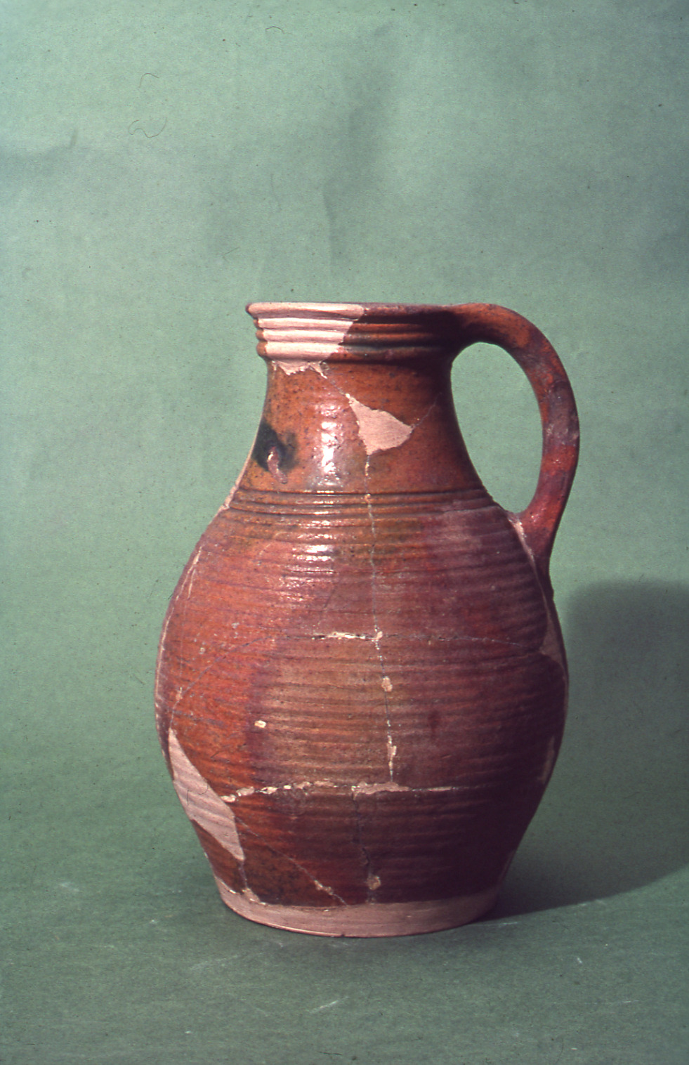 Lundaarkeologiska avdelningens fotonegativ. Lund. Kv. Paradis 33. Kanna av rödbränt lergods. KM 25301.