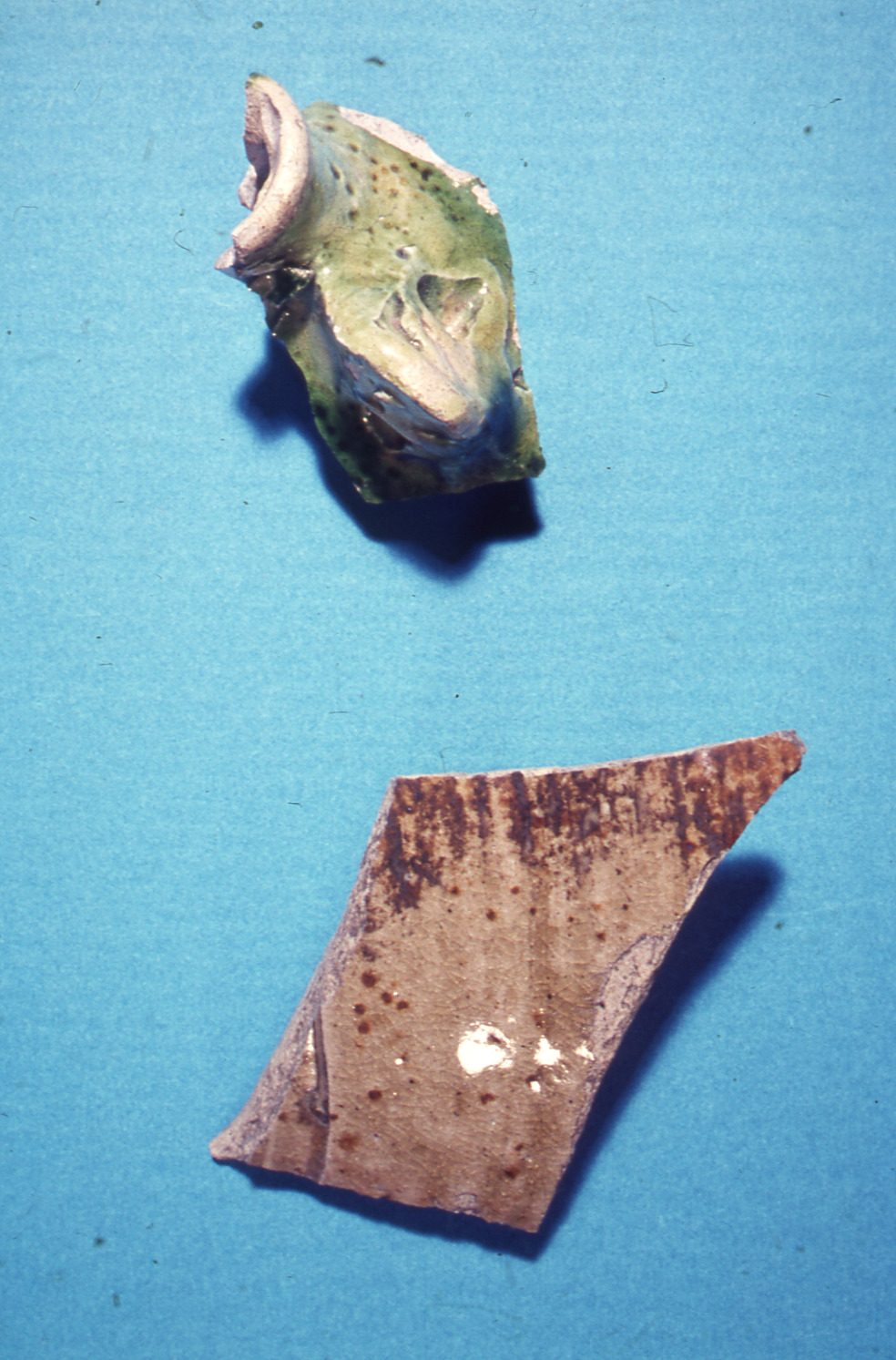 Lundaarkeologiska avdelningens fotonegativ. Lund. St. Gråbrödersgatan. Fragment av liten fältflaska o skärva av hårdbränt grågult gods KM 52894.13,7.