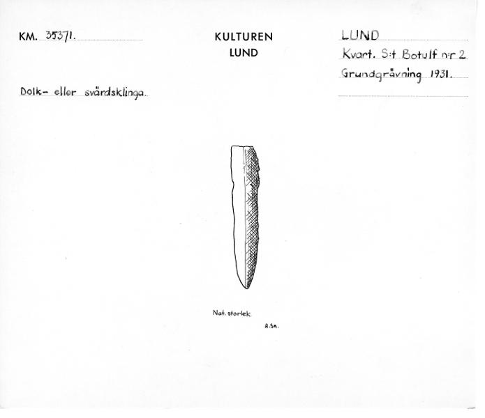 KM 35371 1 :: dolkklinga [?], svärdsklinga [?]