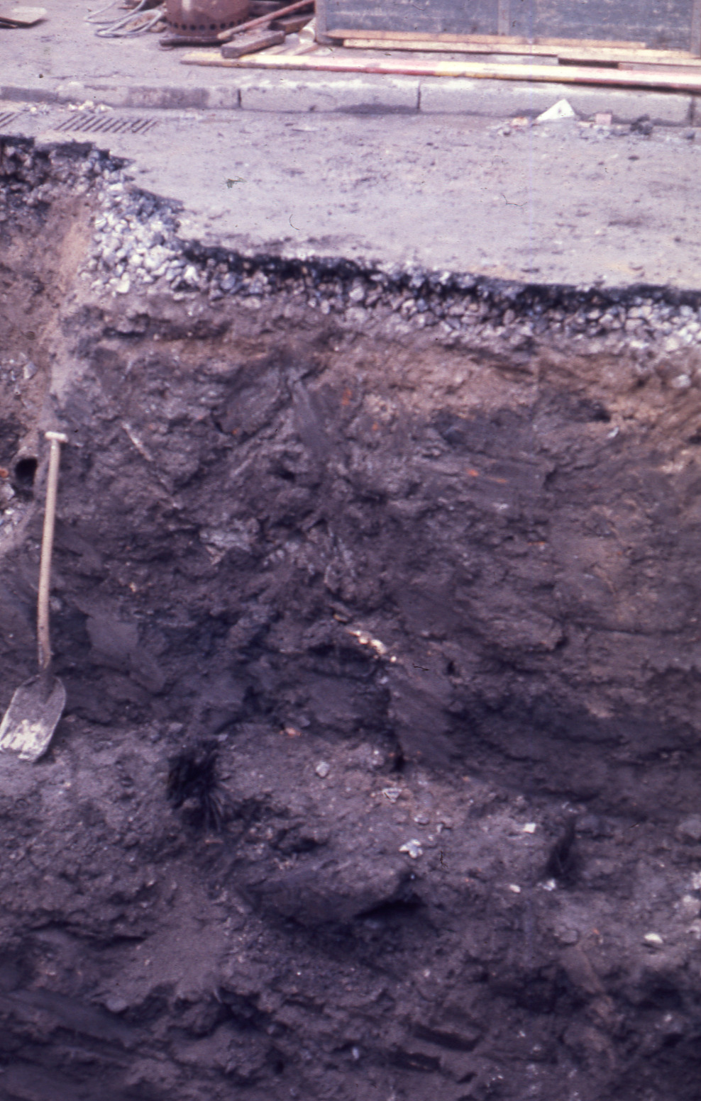 Schaktningsövervakning samtidigt med Stora Södergatan. Grävning för avloppskulvert.