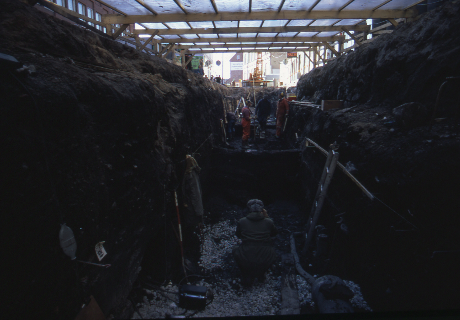 Lundaarkeologiska avdelningens fotonegativ. Lund Kattesund Avloppsgrävning 1974. Kattesund.
