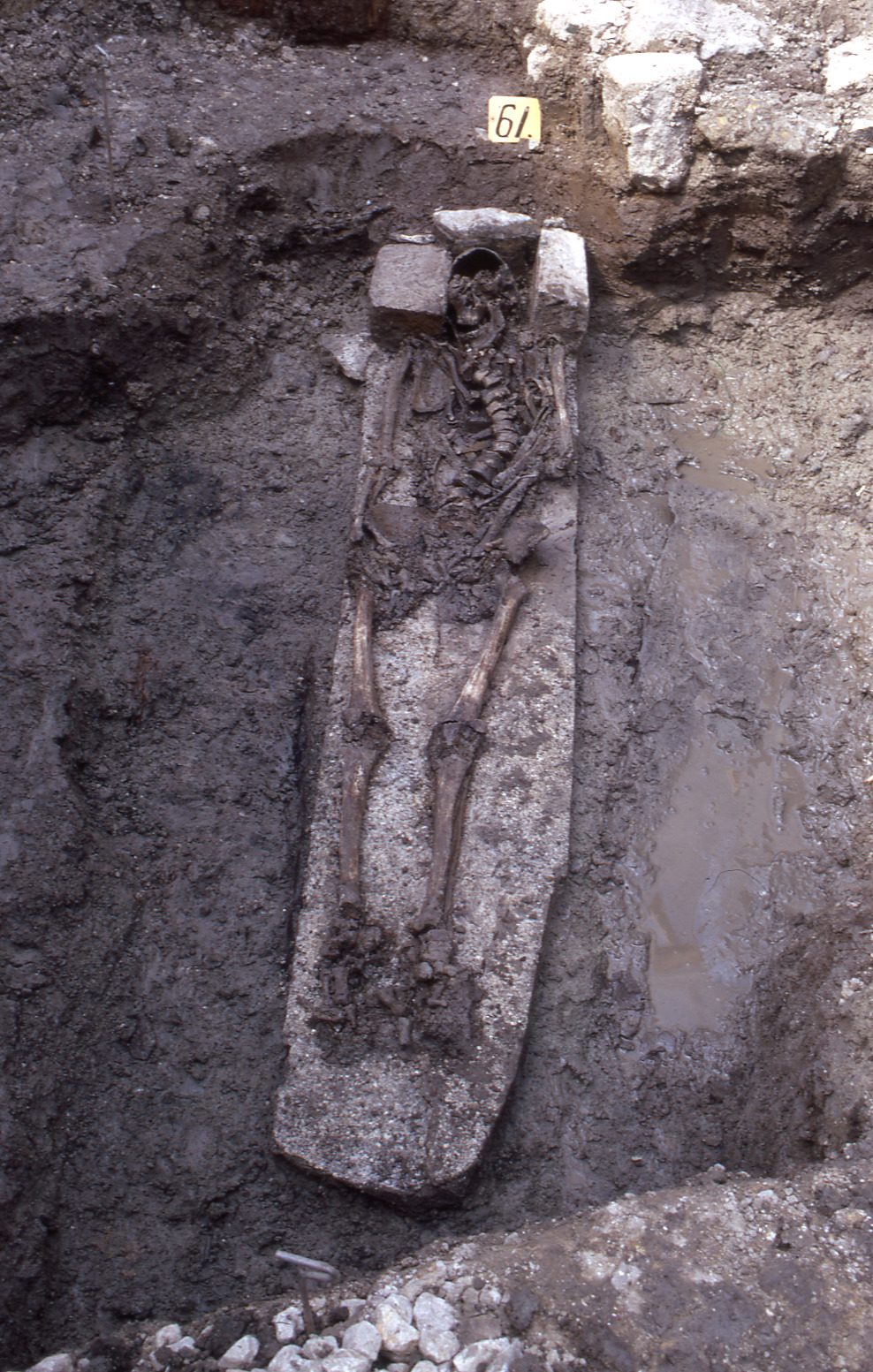 Lundaarkeologiska avdelningens fotonegativ. Kattesund. Gravarna öster om stenkyrkan. Avloppsgrävning 1974.