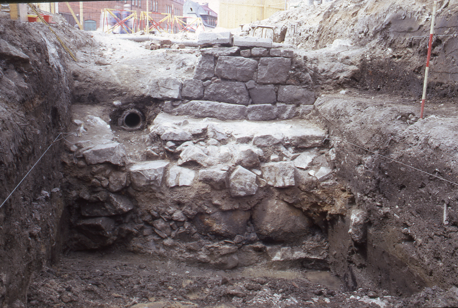 Lundaarkeologiska avdelningens fotonegativ. Kattesund. Avloppsgrävning 1974. Stenkyrkan.