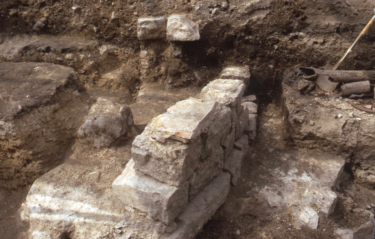 Lundaarkeologiska avdelningens fotonegativ. Lund Kattesund Avloppsgrävning 1974. Stenkyrkan.